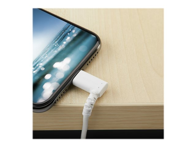 vitt 90° högervinkad, robust aramidfiber USB typ A till Blixtuppladdning/synkron sladd - Apple MFi-certifierad - iPhone - Lightning-kabel - Lightning hane vinklad till USB hane - 1 m - dubbelt skärmad - vit
