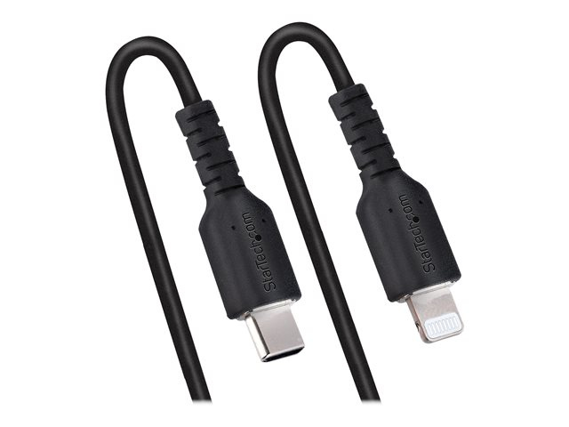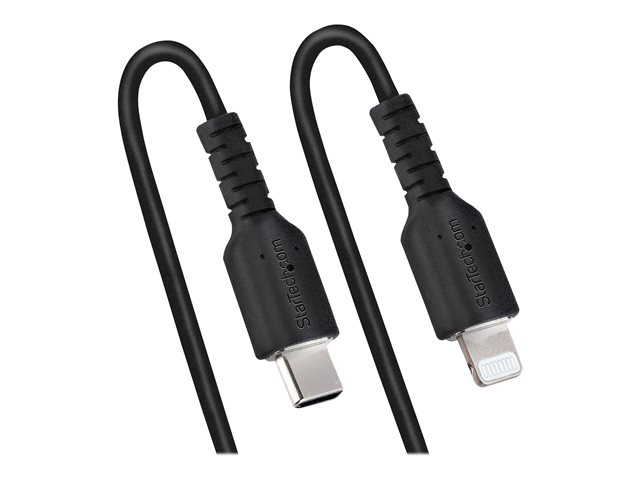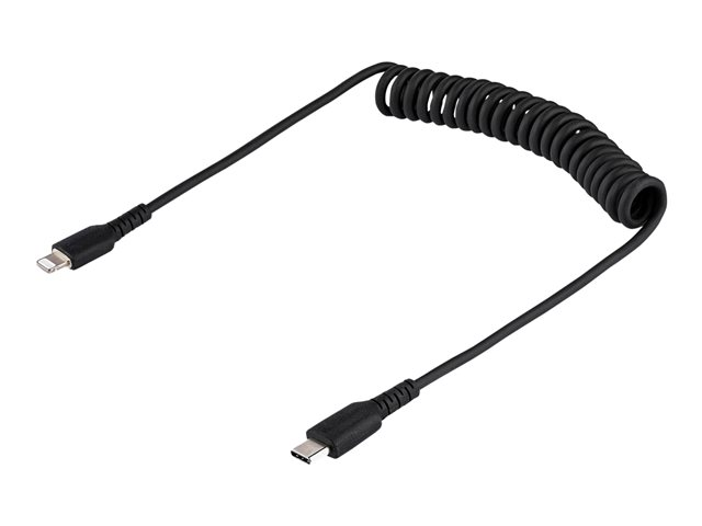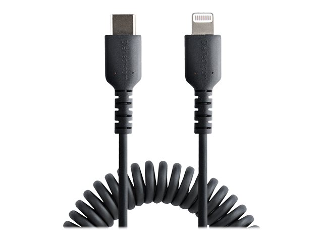 StarTech.com USB C till Lightning-kabel 1 m, MFi-certifierad, iPhone-spiralladdarkabel, svart, TPE-mantel med slitstark aramidfiber, kraftig Lightning-spiralkabel