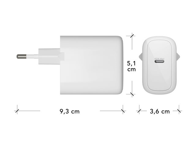 Strömadapter - 45 Watt - PD, QC (24 pin USB-C) - vit - Europa