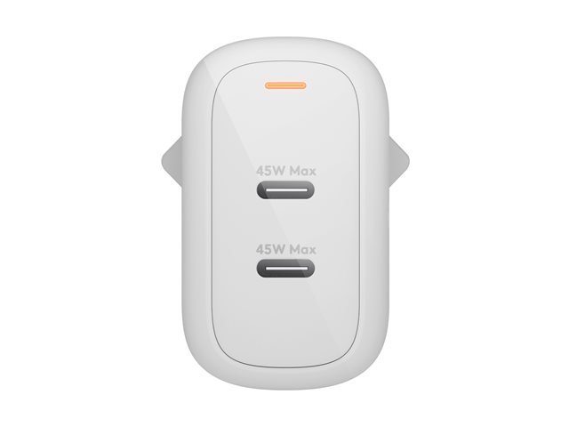 Strömadapter - 45 Watt - PD, QC - 2 utdatakontakter (24 pin USB-C) - vit - Europa