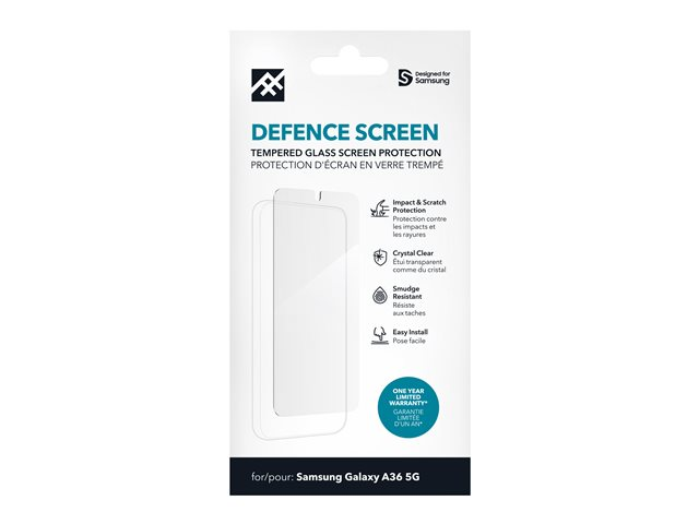 Produktbeskrivning iFrogz Defence - skärmskydd för mobiltelefon Typ av produkt Skärmskydd - glas Avsedd för Mobiltelefon Skydd Stötskydd, repskydd, fläcktålig, motstår fingeravtryck, droppskydd Produktmaterial Härdat glas Vikt 68 g Tillverkarens garanti 1 års garanti Designat för Samsung Galaxy A36 -