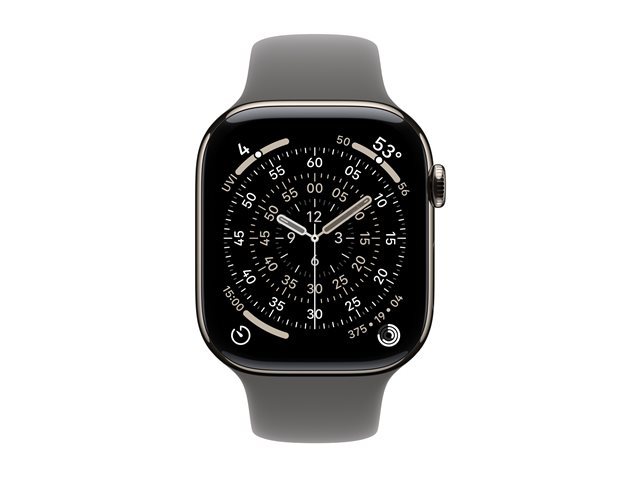46 mm - naturlig titan - smart klocka med sportband - fluoroelastomer - klippgrå - bandstorlek: M/L - 64 GB - LTE, Wi-Fi 4, UWB, Bluetooth - 5G - 43.1 g