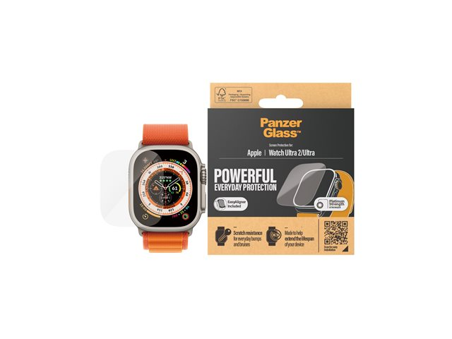 Produktbeskrivning PanzerGlass - skärmskydd för smart klocka Typ av produkt Skärmskydd - glas Avsedd för Smart klocka Kompatibilitet med fallstorlek 49 mm Skydd Stötsäkert, reptålig, droppskydd, kladdsäker, motstår fingeravtryck, smutsresistent Produktmaterial Glas Tillverkarens garanti 30-dagars retur Designat för Apple Watch Ultra (49 mm) -
