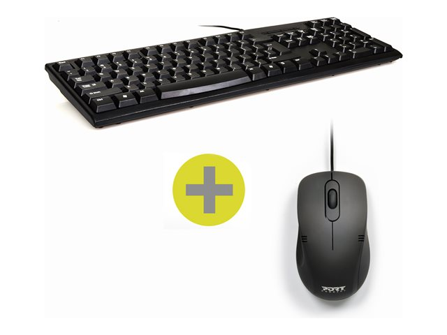 Produktbeskrivning PORT Connect - sats med tangentbord och mus - QWERTY - amerikansk Inmatningsenhet Typ av enhet Sats med tangentbord och mus Gränssnitt USB Anslutningsteknik Kabelansluten Lokalisering och layout QWERTY amerikansk Antal tangenter 104 Numeriskt tangentbord Ja Pekenhet Mus - kabelansluten - optisk - höger- och vänsterhänta Antal knappar 3 Tillverkarens garanti 2 års garanti -