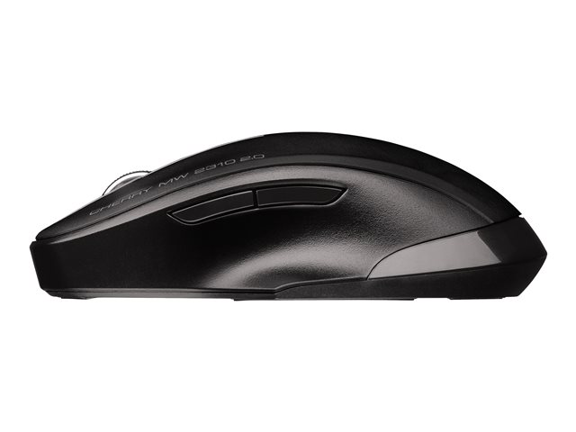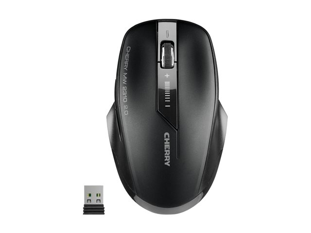 Produktbeskrivning CHERRY MW 2310 2.0 - mus - RF, 2.4 GHz - svart Typ av enhet Mus Anslutningsteknik Trådlös - RF, 2.4 GHz Färg Svart Inriktning Höger- och vänsterhänta Vikt 122 g Trådlös mottagare Nano trådlös USB-mottagare Teknik för rörelsedetektering Optisk Antal knappar 6 Rörelseupplösning 2400 dpi Prestanda Sensitivitetsomkoppling i realtid 1 000/1 600/2 400 dpi Egenskaper Scrollhjul Batteri AA-typ Tillverkarens garanti 3 års garanti -