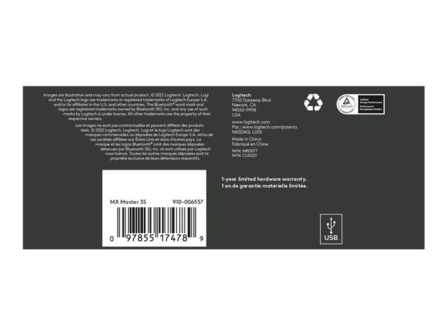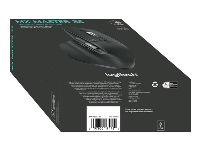 Produktbeskrivning Logitech Master Series MX Master 3S - mus - 2.4 GHz, Bluetooth - grafit Typ av enhet Mus - ergonomisk Anslutningsteknik Trådlös - 2.4 GHz, Bluetooth Färg Grafit Dimensioner (BxDxH) 8.43 cm x 12.49 cm x 5.1 cm Vikt 141 g Trådlös mottagare Logitech Logi Bolt USB-mottagare Teknik för rörelsedetektering Optisk Antal knappar 7 Rörelseupplösning 8000 dpi Prestanda Sensivitetsomkoppling i realtid 200 - 8000 dpi Egenskaper Tumhjul, gestfunktion, återuppladdningsbart batteri, Quiet Clicks-teknik, MagSpeed-hjul, anpassningsbar DPI, Logitech Darkfield Laser Tracking, Easy-Switch-teknik, tumstöd Operativsystem erfordras Android 8.0 (Oreo) eller senare, Apple iPadOS 14 eller senare, Apple MacOS 10.15 eller senare, Google Chrome OS, Linux, Windows 10 / 11 eller senare Återvunnet produktinnehåll 27 % - tillverkad av återvunnen konsumentplast Tillverkarens garanti 2 års garanti -