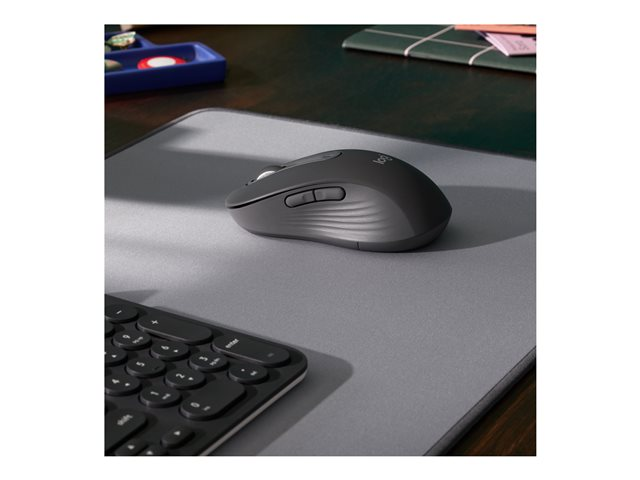 Produktbeskrivning Logitech Signature M650 L for Business - mus - 2.4 GHz, Bluetooth - grafit Typ av enhet Mus Anslutningsteknik Trådlös - 2.4 GHz, Bluetooth Färg Grafit Inriktning Högerhänt Dimensioner (BxDxH) 6.56 cm x 11.89 cm x 4.152 cm Vikt 111.2 g Lokalisering EMEA Trådlös mottagare Logitech Logi Bolt USB-mottagare Antal knappar 5 Rörelseupplösning 4000 dpi Prestanda Sensivitetsomkoppling i realtid 400 - 4 000 dpi Egenskaper 10 miljoner klick, SmartWheel, SilentTouch-teknik, sidohandtag i gummi, på-/avströmbrytare Batteri AA-typ Operativsystem erfordras Windows 10 / 11 eller senare, Apple MacOS X 10.10 eller senare, Linux, Google Chrome OS, Apple iPadOS 13.4 eller senare, Android 5.0 or later Återvunnet produktinnehåll 64 % - tillverkad av återvunnen konsumentplast Fungerar med Chromebook Ja Tillverkarens garanti 2 års garanti -