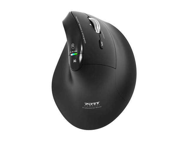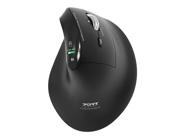 Produktbeskrivning PORT - mus - 2.4 GHz, Bluetooth - svart Typ av enhet Mus - ergonomisk Anslutningsteknik Trådlös - 2.4 GHz, Bluetooth Färg Svart Dimensioner (BxDxH) 11.6 cm x 7.5 cm x 8.4 cm Vikt 130 g Trådlös mottagare Trådlös USB-mottagare Teknik för rörelsedetektering Optisk Antal knappar 6 Rörelseupplösning 4800 dpi Egenskaper Knapp för snabbåtkomst till artificiell intelligens, samtidiga anslutningar för 3 enheter, tyst klick Operativsystem erfordras Apple MacOS, Microsoft Windows, Android, Google Chrome OS Tillverkarens garanti 3 års garanti -