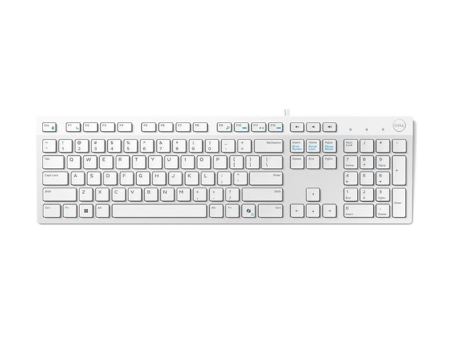 Produktbeskrivning Dell KB216 - tangentbord - multimedia - QWERTY - hela norden - vit Inmatningsenhet Typ av enhet Tangentbord Gränssnitt USB Anslutningsteknik Kabelansluten Lokalisering och layout QWERTY hela norden Snabbtangentsfunktion FN-knapplås, volym -, volym +, stänga av ljud, spela upp(paus, bakåt, framåt, vila, sökning Tangentstil Chiclet Numeriskt tangentbord Ja Färg Vit Dimensioner (BxDxH) 44.17 cm x 12.73 cm x 2.432 cm Vikt 400.5 g -