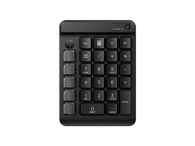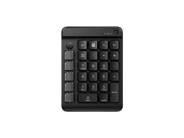 Produktbeskrivning HP 435 - tangentsats - 9 programmerbara tangenter, låg profil tangentresor, utbytbara tangenter med klistermärken - engelska - jacksvart Inmatningsenhet Typ av enhet Tangentsats Gränssnitt Bluetooth 5.3 Anslutningsteknik Trådlös Lokalisering och layout Engelska Snabbtangentsfunktion Kalkylator Skydd Spillbeständig Numeriskt tangentbord Ja Färg Jacksvart Dimensioner (BxDxH) 11 cm x 15.3 cm x 1.9 cm Vikt 256 g Tillverkarens garanti 1 års garanti -