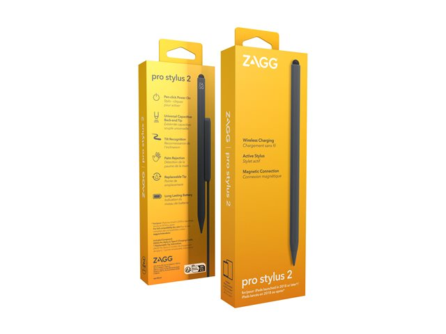 Produktbeskrivning ZAGG Pro Stylus 2 - aktiv penna - grå Typ av enhet Aktiv penna Färg Grå Vikt 109 g Egenskaper LED-indikator, Palm Rejection-teknik, lutningskänslig, magnetiskt fästområde, utbytbar spets, automatisk avslagning, trådlös laddning Tillverkarens garanti 2 års garanti -