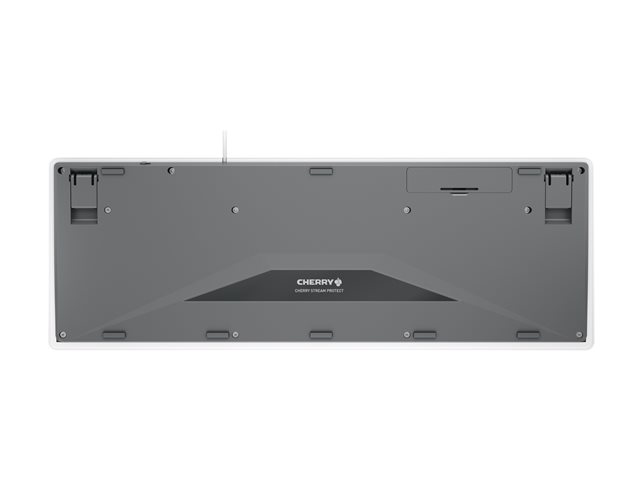 Produktbeskrivning CHERRY STREAM KEYBOARD - tangentbord - hygieniskt tangentbord som kan desinficeras - QWERTY - Nordisk - pärlgrå Inmatningsenhet Typ av enhet Tangentbord Gränssnitt USB Anslutningsteknik Kabelansluten Lokalisering och layout QWERTY Nordisk Antal tangenter 105 Antal snabbtangenter 10 Snabbtangentsfunktion Webbläsare, kalkylator, e-post, stänga av ljud, nästa spår, PC-lås, spela upp(paus, föregående spår, volym -, volym + Skydd Stänktålig Tvättbar Ja Numeriskt tangentbord Ja Färg Pärlgrå Dimensioner (BxDxH) 46.5 cm x 16.4 cm x 1.9 cm Vikt 1.01 kg Miljöstandarder Blue Angel -