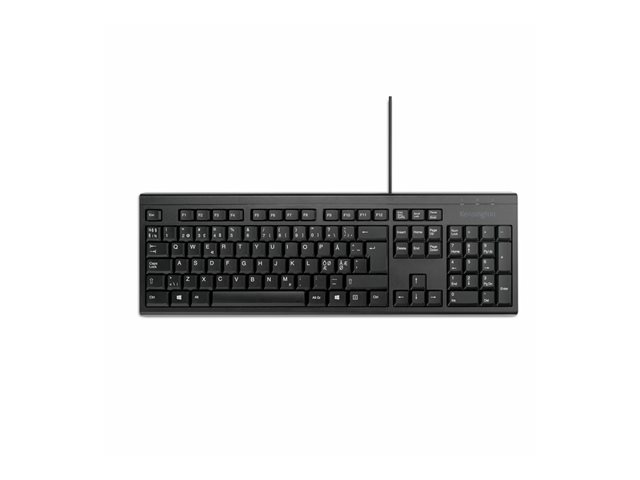 Produktbeskrivning Kensington KB100 EQ - tangentbord full size - QWERTY - hela norden - svart Inmatningsenhet Typ av enhet Tangentbord Gränssnitt USB Anslutningsteknik Kabelansluten Lokalisering och layout QWERTY hela norden Skydd Spillsäker Numeriskt tangentbord Ja Färg Svart Dimensioner (BxDxH) 44.47 cm x 14.74 cm x 3.47 cm Vikt 511 g Förpackningstyp OEM - FSC-kartong Tillverkarens garanti 3 års garanti -