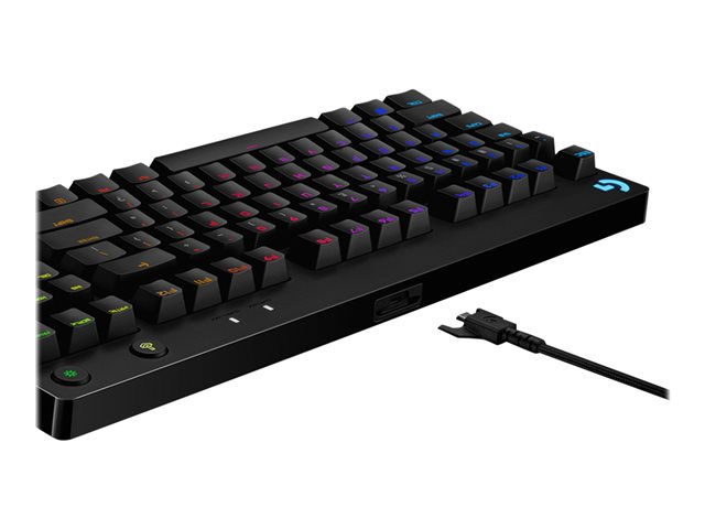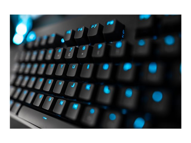 Produktbeskrivning Logitech G Pro Mechanical Gaming Keyboard - tangentbord - hela norden - svart Inmatningsenhet Typ av enhet Tangentbord Bakgrundsbelyst RGB Gränssnitt USB Anslutningsteknik Kabelansluten Lokalisering och layout Hela norden Snabbtangentsfunktion Programmerbar Gaming Ja Nyckellåstyp GX Blue Clicky Färg Svart Dimensioner (BxDxH) 36.1 cm x 15.3 cm x 3.4 cm Tillverkarens garanti 2 års garanti -
