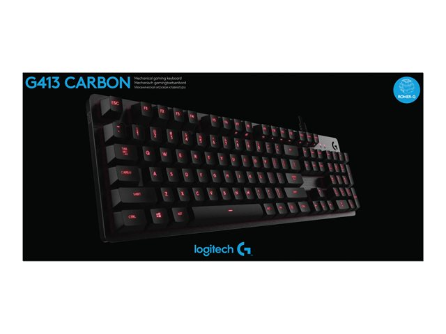 Produktbeskrivning Logitech Gaming G413 - tangentbord - Nordisk - kol Inmatningsenhet Typ av enhet Tangentbord Bakgrundsbelyst Röd Gränssnitt USB Anslutningsteknik Kabelansluten Lokalisering och layout Nordisk Antal tangenter 108 Snabbtangentsfunktion Multimedia, bakgrundsbelysningskontroll, spellägesnyckel Gaming Ja Nyckellåstyp Romer-G Färg Kol Dimensioner (BxDxH) 44.5 cm x 13.2 cm x 3.4 cm Vikt 1.105 kg Tillverkarens garanti 2 års garanti -
