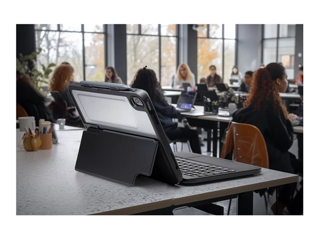 Produktbeskrivning ZAGG Tough Keys - tangentbord och foliefodral (fodral) - med pekdyna - QWERTY - Nordisk - svart - B2B Inmatningsenhet Typ av enhet Tangentbord och foliefodral Gränssnitt USB-C Anslutningsteknik Kabelansluten Inbyggda enheter Pekdyna Lokalisering och layout QWERTY Nordisk Skydd Vattentålig, droppskydd Färg Svart tangentbord, svart fodral Fodralmaterial Polykarbonat Förpackningstyp Brun låda Försäljningsprogram från tillverkaren B2B Tillverkarens garanti 1 års garanti -