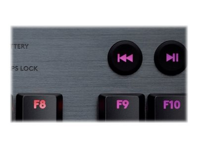 Produktbeskrivning Logitech G915 TKL Tenkeyless LIGHTSPEED Wireless RGB Mechanical Gaming Keyboard - tangentbord - Nordisk - kol Inmatningsenhet Typ av enhet Tangentbord Bakgrundsbelyst LIGHTSYNC Gränssnitt USB, Bluetooth, 2.4 GHz Trådlös mottagare USB Logitech LIGHTSPEED-mottagare Lokalisering och layout Nordisk Snabbtangentsfunktion Multimedia, volym Gaming Ja Nyckellåstyp GL Clicky Färg Kol Dimensioner (BxDxH) 36.8 cm x 15 cm x 2.2 cm Vikt 810 g Tillverkarens garanti 2 års garanti -