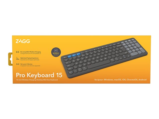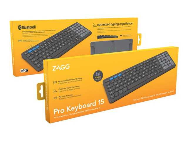 Produktbeskrivning ZAGG - tangentbord - mellanstorlek - Nordisk Inmatningsenhet Typ av enhet Tangentbord - ergonomisk Gränssnitt Bluetooth Anslutningsteknik Trådlös Lokalisering och layout Nordisk Antal tangenter 92 -