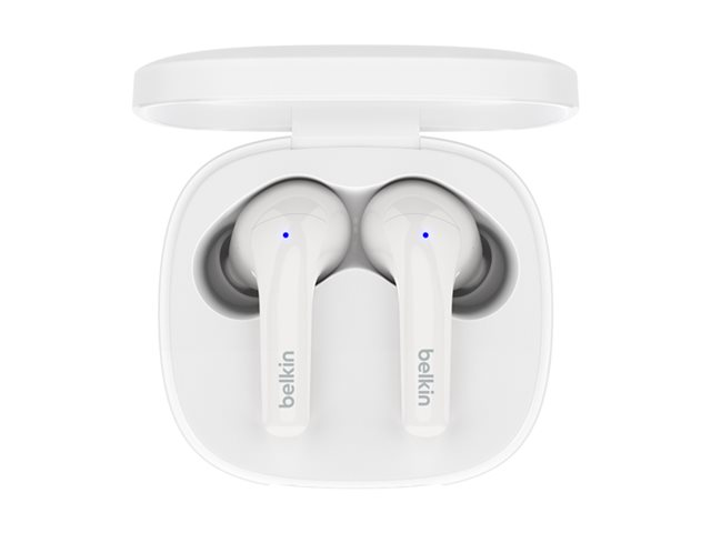Produktbeskrivning Belkin SoundForm Motion - True wireless-hörlurar med mikrofon Typ av produkt True wireless-hörlurar - Bluetooth Kompatibilitet iPhone, Android-telefon, Windows, Chrome OS Rekommenderad användning Bärbar elektronik Färg Vit Hörlursmodell Inuti örat Trådlös teknik Bluetooth Bluetoothversion Bluetooth 5.2 Ljudutgångsläge Stereo Ljudeffekter Basförstärkning, Balanserat ljud, Signaturmelodi Active Noise Canceling Ja Ljudisolerande Ja Inkluderade mikrofoner 4 Kontroller Svara/avsluta, avvisa samtal, röstassistent, spela/pausa, nästa/föregående låt, equalizerförinställning Intelligent assistent Siri, Google Assistant - indirekt Tillverkarens garanti 2 års garanti -
