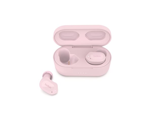 Produktbeskrivning Belkin SoundForm Play - True wireless-hörlurar med mikrofon Typ av produkt True wireless-hörlurar - Bluetooth Kompatibilitet iPhone, Android-telefon Rekommenderad användning Bärbar elektronik Färg Rosa Hörlursmodell Inuti örat Trådlös teknik Bluetooth Hörlursteknik Dynamisk Bluetoothversion Bluetooth 5.2 Ljudutgångsläge Stereo Active Noise Canceling Ja Inkluderade mikrofoner 2 Kontroller Volym, hoppa över låt, svara på samtal Tillverkarens garanti 2 års garanti -