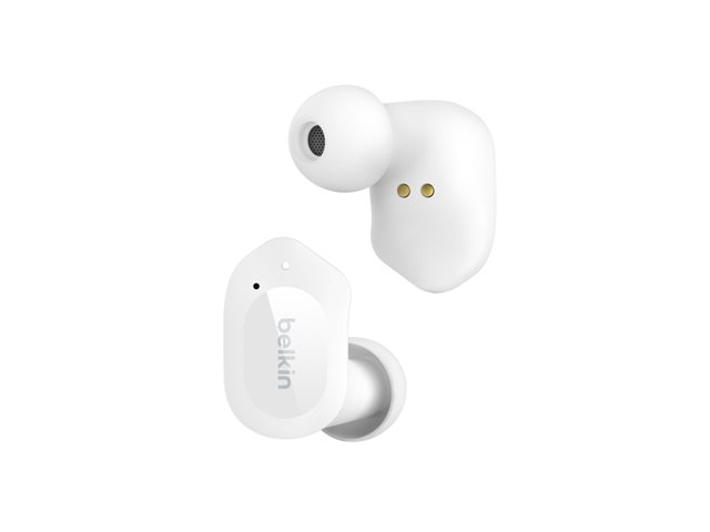 Produktbeskrivning Belkin SoundForm Play - True wireless-hörlurar med mikrofon Typ av produkt True wireless-hörlurar - Bluetooth Kompatibilitet iPhone, Android-telefon Rekommenderad användning Bärbar elektronik Färg Moln Hörlursmodell Inuti örat Trådlös teknik Bluetooth Hörlursteknik Dynamisk Bluetoothversion Bluetooth 5.2 Ljudutgångsläge Stereo Active Noise Canceling Ja Inkluderade mikrofoner 2 Kontroller Volym, hoppa över låt, svara på samtal -