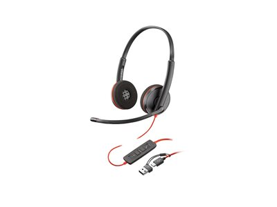 Blackwire 3200 Series - headset - på örat - kabelansluten - USB-C - svart - Certifierad för Skype for Buisness, Cisco Jabber-certifierad, Avaya-certifierad, UC-certifierad