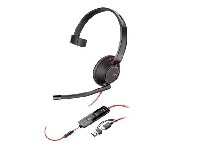 Blackwire 5200 series - headset - på örat - kabelansluten - 3,5 mm kontakt, USB-C - svart - Certifierad för Microsoft-teams, Certifierad för Skype for Buisness, Cisco Jabber-certifierad, Avaya-certifierad, Works With Chromebook Certified, Zoomcertifierad, UC-certifierad
