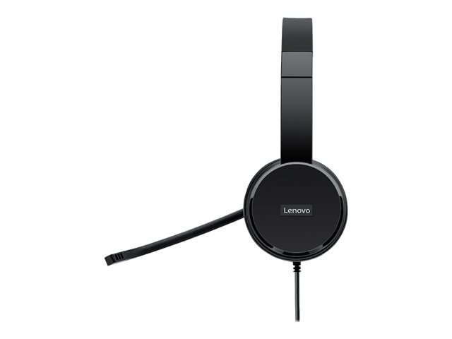 Produktbeskrivning Lenovo 100 - headset Typ av produkt Headset - kabelansluten - USB-A Färg Svart Hörlursmodell På örat Anslutningsteknik Kabelansluten Ljudspecifikationer Frekvensrespons 20 - 20000 Hz - Sensitivitet 116 dB Impedans 32 ohm Max. inmatningsström 20 mW Mikrofon Bom Fungerar med Chromebook Ja Tillverkarens garanti 1 års garanti -