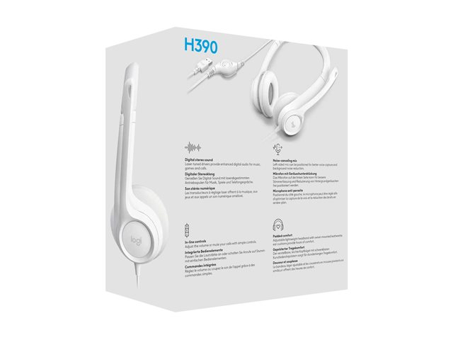 Produktbeskrivning Logitech H390 - headset - USB-A Typ av produkt Headset - kabelansluten - USB-A Kompatibilitet Chrome OS, Mac, Windows Rekommenderad användning Dator - kommunikation Färg Offwhite Hörlursmodell På örat Anslutningsteknik Kabelansluten Ljudutgångsläge Stereo Ljudeffekter Crystal Clear Ljudspecifikationer Frekvensrespons 20 - 20000 Hz - Sensitivitet 94 dB +/- 3dB Impedans 32 ohm Mikrofon Bom Operativt läge för mikrofon Dubbelriktad Brusreducerande mikrofon Ja Kontroller Volym, stänga av ljud Tillverkarens garanti 2 års garanti -