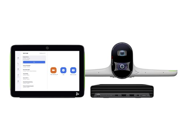För zoomningsrum - paket för videokonferens (Poly Studio E70-kamera, Poly TC10 pekstyrenhet, HP Mini Conferencing PC) - Zoomcertifierad - vit