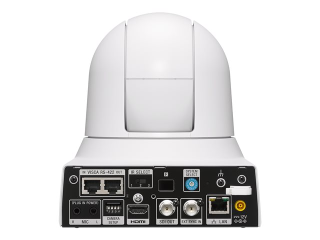 Produktbeskrivning Sony BRC-X400 - konferenskamera Typ av enhet Konferenskamera - panorering / lutning / zoom Ljud Ja: tvåvägs ljudkapacitet Kameramonteringstyp Takmontering Färg Vit Anslutningsteknik Kabelanslutning Kamera Färg - 1700 TVL Max upplösning 3840 x 2160 Bildhastighet (max) 30 frames per second Videoformat 2160/29.97p, 1080/59.94p Bildsensortyp Exmor R CMOS - 1/2.5" Mimimibelysning 1.6 lux F2.0 - 50 IRE - slutare 1/30 sek. Panoreringsområde (grader) -170 till +170 Lutningsområde (grader) -20 till +90 Gränssnitt HDMI, 3G-SDI Kontrollgränssnitt VISCA Spänning Likström 12 V/PoE Plus Egenskaper 256 förinställda positioner -