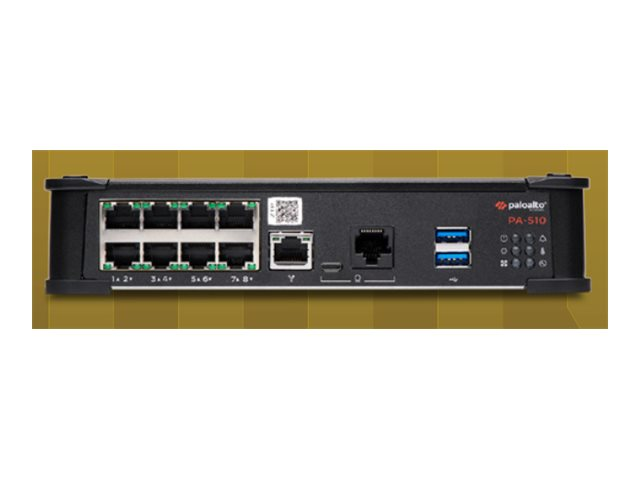 Produktbeskrivning Palo Alto Networks PA-500 Series PA-510 - säkerhetsfunktion - molnhanterad Typ av enhet Säkerhetsfunktion Formfaktor Kan monteras i rack - 1U Hårddisk 128 GB x 1 Antal portar 8 Datalänkprotokoll Ethernet, Fast Ethernet, Gigabit Ethernet Prestanda Brandväggens genomströmningshastighet: 1,8 Gbps