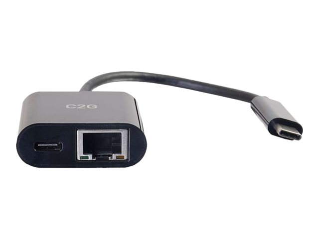 Produktbeskrivning C2G USB C to Ethernet Adapter With Power Delivery - Black - nätverksadapter - USB-C - Gigabit Ethernet x 1 Typ av enhet Nätverksadapter Formfaktor Extern Gränssnittstyp (buss) USB-C Portar Gigabit Ethernet x 1 Vikt 260 g Typ av kablage Ethernet 10Base-T, Ethernet 100Base-TX, Ethernet 1000Base-T Datalänkprotokoll 10Mb LAN, 100Mb LAN, 1GbE Dataöverföringshastighet 1000 Mbps Processor VL813 Standarder som följs USB 3.1 Färg Svart Tillverkarens garanti 3 års garanti -