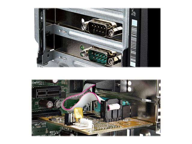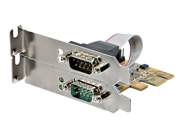 Produktbeskrivning StarTech.com 2-Port PCI Express Serial Card, Dual Port PCIe to RS232 (DB9) Serial Interface Card, 16C1050 UART, Standard or Low Profile Brackets, COM Retention, For Windows & Linux - PCIe to Dual DB9 Card (21050-PC-SERIAL-LP) - seriell adapter - PCIe 2.0 - RS-232 x 2 Typ av enhet Seriell adapter Formfaktor Instickskort - låg profil Gränssnittstyp (buss) PCI Express 2.0 x1 Version av PCI-specifikation PCIe 2.0 Portar RS-232 x 2 Dimensioner (BxDxH) 6.6 cm x 6.7 cm x 1.8 cm Datalänkprotokoll RS-232 Dataöverföringshastighet 921.6 Kbps Standarder som följs 16C1050 UART Färg Gul Systemkrav Microsoft Windows 7 / 8 / 8.1 / 10 / 11, Microsoft Windows Server 2016, Microsoft Windows Server 2019, Linux 2.6.13 eller senare Tillverkarens garanti 2 års garanti -