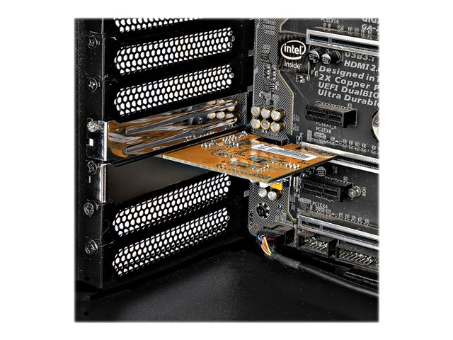 Produktbeskrivning StarTech.com PCI Express Serial Card, PCIe to RS232 (DB9) Serial Interface Card, PC Serial Card with 16C1050 UART, Standard or Low Profile Brackets, COM Retention, For Windows & Linux - PCIe to DB9 Card (11050-PC-SERIAL-CARD) - seriell adapter - PCIe 2.0 - RS-232 x 1 Typ av enhet Seriell adapter Formfaktor Instickskort - låg profil Gränssnittstyp (buss) PCI Express 2.0 x1 Version av PCI-specifikation PCIe 2.0 Portar RS-232 x 1 Dimensioner (BxDxH) 1.8 cm x 6.5 cm x 6.7 cm Datalänkprotokoll RS-232 Dataöverföringshastighet 921.6 Kbps Standarder som följs 16C1050 UART Färg Gul Systemkrav Microsoft Windows 7 / 8 / 10 / 11, Microsoft Windows Server 2016, Microsoft Windows Server 2019, Linux Tillverkarens garanti 2 års garanti -