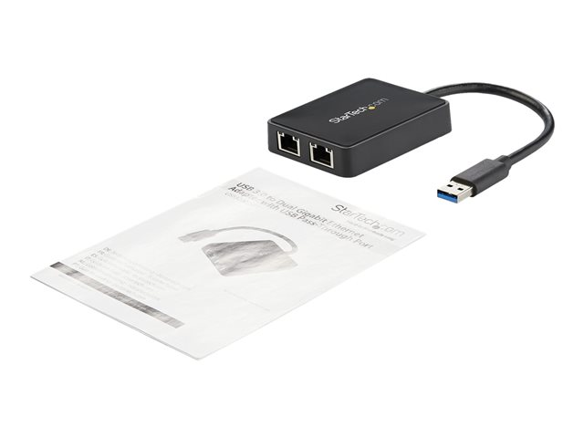 StarTech.com USB 3.0 till Dubbel Port Gigabit Ethernet-nätverksadapter med USB-port