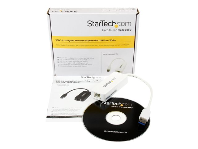 StarTech.com USB 3.0 to Gigabit Ethernet Adapter NIC w/ USB Port (White)