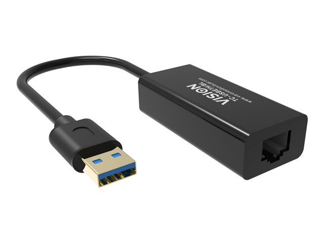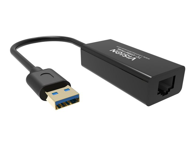 Produktbeskrivning Vision TC-USBETH/BL - nätverksadapter - USB 2.0 - Gigabit Ethernet x 1 Typ av enhet Nätverksadapter Formfaktor Extern Gränssnittstyp (buss) USB 2.0 Portar Gigabit Ethernet x 1 Dimensioner (BxDxH) 5.9 cm x 2.1 cm x 1.5 cm Typ av kablage Ethernet 10Base-T, Ethernet 100Base-TX, Ethernet 1000Base-T Datalänkprotokoll 10Mb LAN, 100Mb LAN, 1GbE Färg Svart -