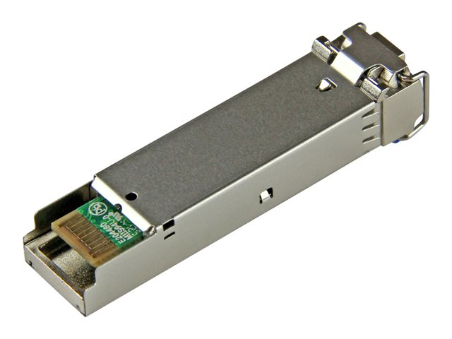 Produktbeskrivning StarTech.com MSA Uncoded Compatible SFP Module, 1000BASE-LX, 1GbE Single Mode (SMF) Fiber Optic Transceiver, 1GE Gigabit Ethernet SFP, LC Connector, 10km, 1310nm, DDM, Mini GBIC Module - Lifetime Warranty (SFP1000LXST) - SFP-sändar/mottagarmodul (mini-GBIC) - 1GbE Typ av enhet SFP-sändar/mottagarmodul (mini-GBIC) - LC enkelläge Formfaktor Insticksmodul Typ av kablage 1000Base-LX Dataöverföringshastighet 1.25 Gbps Optisk våglängd 1310 nm Datalänkprotokoll 1GbE Max överföringsavstånd 10 km Dimensioner (BxDxH) 1.39 cm x 5.84 cm x 1.26 cm Vikt 30 g Tillverkarens garanti Begränsad livstidsgaranti Designat för P/N: US1GA30SFP, US1GC30SFP -