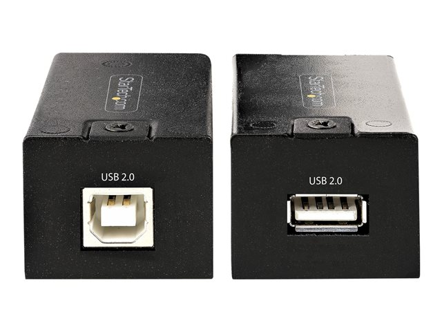Produktbeskrivning StarTech.com USB 2.0 Extender over Cat5e/Cat6 Cable (RJ45), 492ft/150m USB Over Ethernet Extender/Adapter Kit - Externally Powered USB Extender, USB to Ethernet Converter, 480 Mbps, Rugged Metal Housing (C15012-USB-EXTENDER) - USB-förlängningskabel - USB 2.0 - TAA-kompatibel Typ av enhet USB-förlängningskabel Formfaktor Extern Lokalisering Nordamerika Dataöverföringshastighet 480 Mbps Datalänkprotokoll USB 2.0 Överföringsmedium CAT 5e/6 Max överföringsavstånd 150 km Strömtillförsel AC 100-240 V Dimensioner (BxDxH) 3.2 cm x 6.7 cm x 2.5 cm Vikt 173 g TAA-kompatibel Ja Tillverkarens garanti 2 års garanti -
