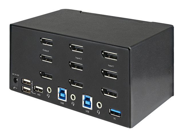 4K 60 Hz UHD HDR - Desktop DP 1.2 KVM med 2 portar USB 3.0-hubb (5 Gbit/s) och 4x USB 2.0 HID-portar, ljud - Snabbtangenter för omkoppling - TAA - Omkopplare för tangentbord/video/mus/ljud - 2 x KVM/ljud - skrivbordsmodell - TAA-kompatibel