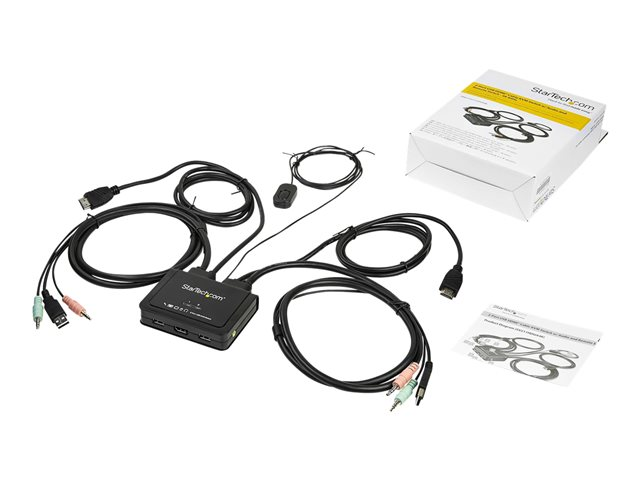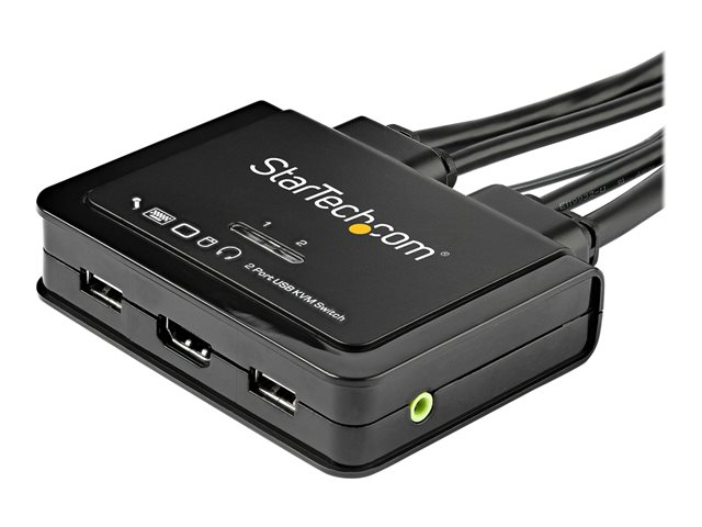 4K 60 Hz - Kompakt UHD/ultra HD USB KVM-switch för stationära datorer med dubbelport och inbyggda 1,2 m kablar samt audio - Bussdriven och fjärrswitchad - MacBook ThinkPad - Omkopplare för tangentbord/video/mus/ljud - 2 x KVM/ljud - 1 lokal användare - skrivbordsmodell