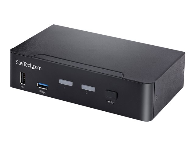 Produktbeskrivning StarTech.com USB C KVM Switch, 2 Port DisplayPort KVM w/ 4K 60Hz UHD HDR Video, 3.5mm Audio, USB Type C KVM Switch, 4x USB HID and 2x USB A 3.2 Gen 1 5Gbps Hub, Thunderbolt 3/4 Compatible - Hot Key Switching (SV231DPUCA) - omkopplare för tangentbord/video/mus/ljud/USB - 2 portar - TAA-kompatibel Typ av enhet Omkopplare för tangentbord/video/mus/ljud/USB - 2 portar Undertyp KVM Portar 2 x KVM/ljud/USB Funktioner Auto Scan Mode, metallhölje, Tryckknapp/kortkommando, HDR 4K60 4:4:4-kompatibel, 4K UHD-videoströmning, USB HID Transport, stöd för 2,1 ljudkanal, videoomkopplare Standarder som följs USB 1.1, HDCP 2.2, USB 3.2 Gen 1 Strömtillförsel AC 100-240 V 1.2 A Dimensioner (BxDxH) 14 cm x 16 cm x 4 cm Vikt 600 g TAA-kompatibel Ja Tillverkarens garanti 2 års garanti -