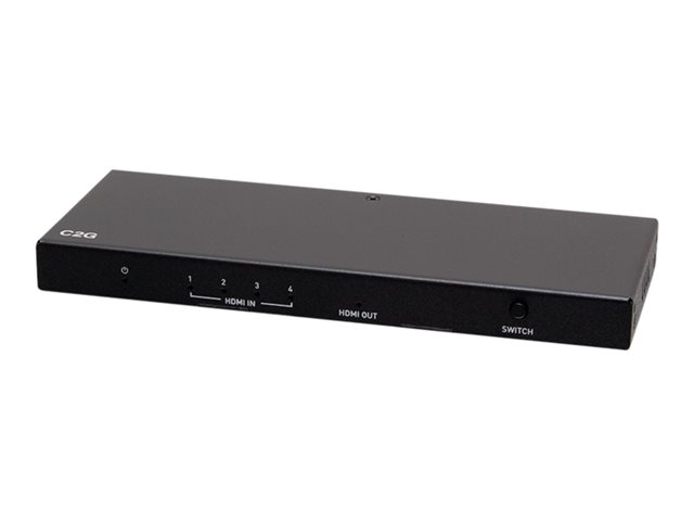 Produktbeskrivning C2G 4-Port HDMI Switch - 4K HDMI Video Switch Box - video/audiosplitter - 4 portar Typ av enhet Video/audiosplitter - 4 portar Undertyp HDMI Portar 4 x HDMI Funktioner Stödjer för 4:4:4 chroma stickprov Strömtillförsel AC 100-240 V (50/60 Hz) Dimensioner (BxDxH) 17.5 cm x 6.62 cm x 1.8 cm Färg Svart Tillverkarens garanti 3 års garanti -