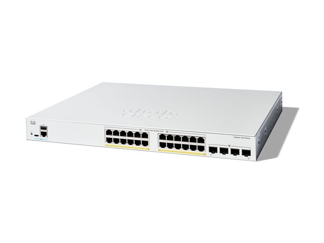 Produktbeskrivning Cisco Catalyst 1200-24FP-4G - switch - 24 portar - smart - rackmonterbar Typ av enhet Switch - 24 portar - L3 - smart Modell Rackmonterbar Undertyp Gigabit Ethernet Portar 24 x 10/100/1000 (PoE+) + 4 x Gigabit Ethernet SFP PoE (Power Over Ethernet) PoE+ PoE-budget 375 W Prestanda Vidarebefordringshastighet (paket med 64 bytes): 41,66 Mpps
