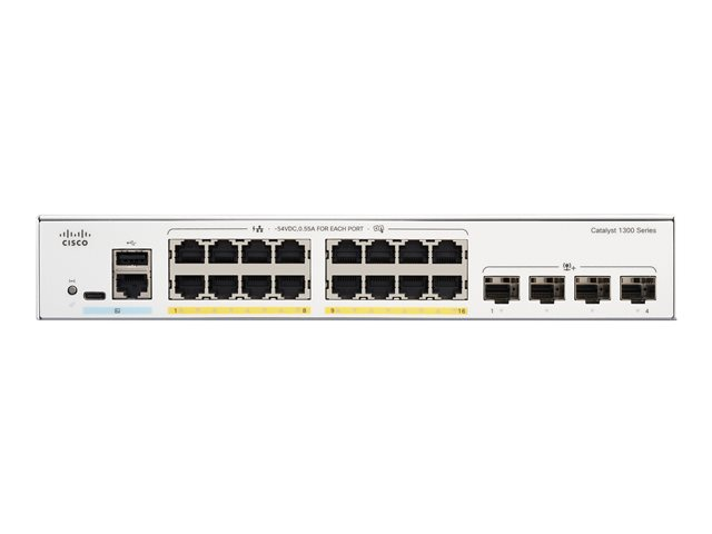 Produktbeskrivning Cisco Catalyst 1300-16P-4X - switch - 16 portar - Administrerad - rackmonterbar Typ av enhet Switch - 16 portar - L3 - Administrerad - staplingsbar Modell Rackmonterbar Undertyp Gigabit Ethernet Portar 16 x 10/100/1000 (PoE+) + 4 x 10Gb Ethernet SFP+ PoE (Power Over Ethernet) PoE+ PoE-budget 120 W Prestanda Vidarebefordringshastighet (paket med 64 bytes): 83.32 Mpps