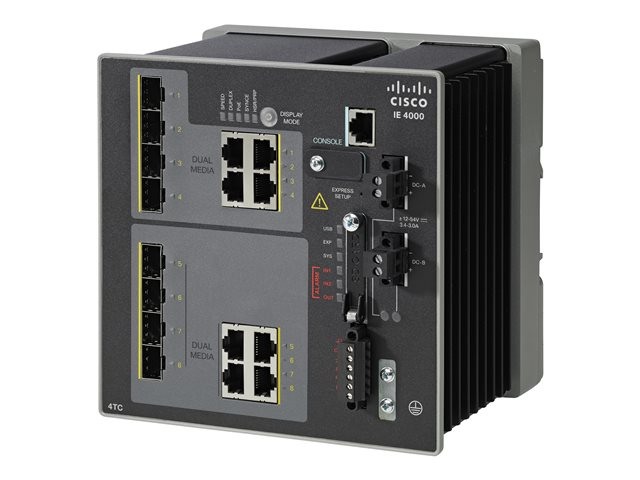 Produktbeskrivning Cisco Industrial Ethernet 4000 Series - switch - 8 portar - Administrerad - TAA-kompatibel Typ av enhet Switch - 8 portar - Administrerad Undertyp Fast Ethernet Portar 4 x kombinations-SFP + 4 x kombinations-Gigabit SFP Kapacitet Virtuella gränssnitt (VLAN): 1000