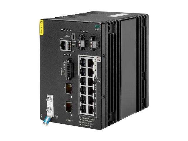Produktbeskrivning HPE Aruba 4100i - switch - 12 portar Typ av enhet Switch - 12 portar Undertyp Gigabit Ethernet Portar 8 x 10/100/1000 (PoE Class 4) + 4 x 10/100/1000 (PoE Class 6) + 2 x SFP+ PoE (Power Over Ethernet) PoE Class 4 / PoE Class 6 -