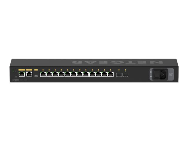 Produktbeskrivning NETGEAR AV Line M4250-12M2XF - switch - 14 portar - Administrerad - rackmonterbar Typ av enhet Switch - 14 portar - L3 - Administrerad Modell Sida till sida luftflöde rackmonterbar 1U Undertyp 10 Gigabit Ethernet Portar 12 x 10/100/1000/2.5G + 2 x 10 Gigabit SFP+ Prestanda Växlingskapacitet: 100 Gbps