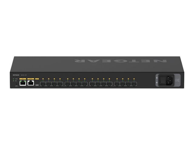 Produktbeskrivning NETGEAR AV Line M4250-16XF - switch - 16 portar - Administrerad - rackmonterbar Typ av enhet Switch - 16 portar - L3 - Administrerad Modell Sida till sida luftflöde rackmonterbar 1U Undertyp 10 Gigabit Ethernet Portar 16 x 10 Gigabit SFP+ Prestanda Växlingskapacitet: 320 Gbps